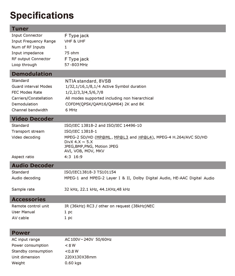 *Interface Type: USB, HDMI, Coaxial