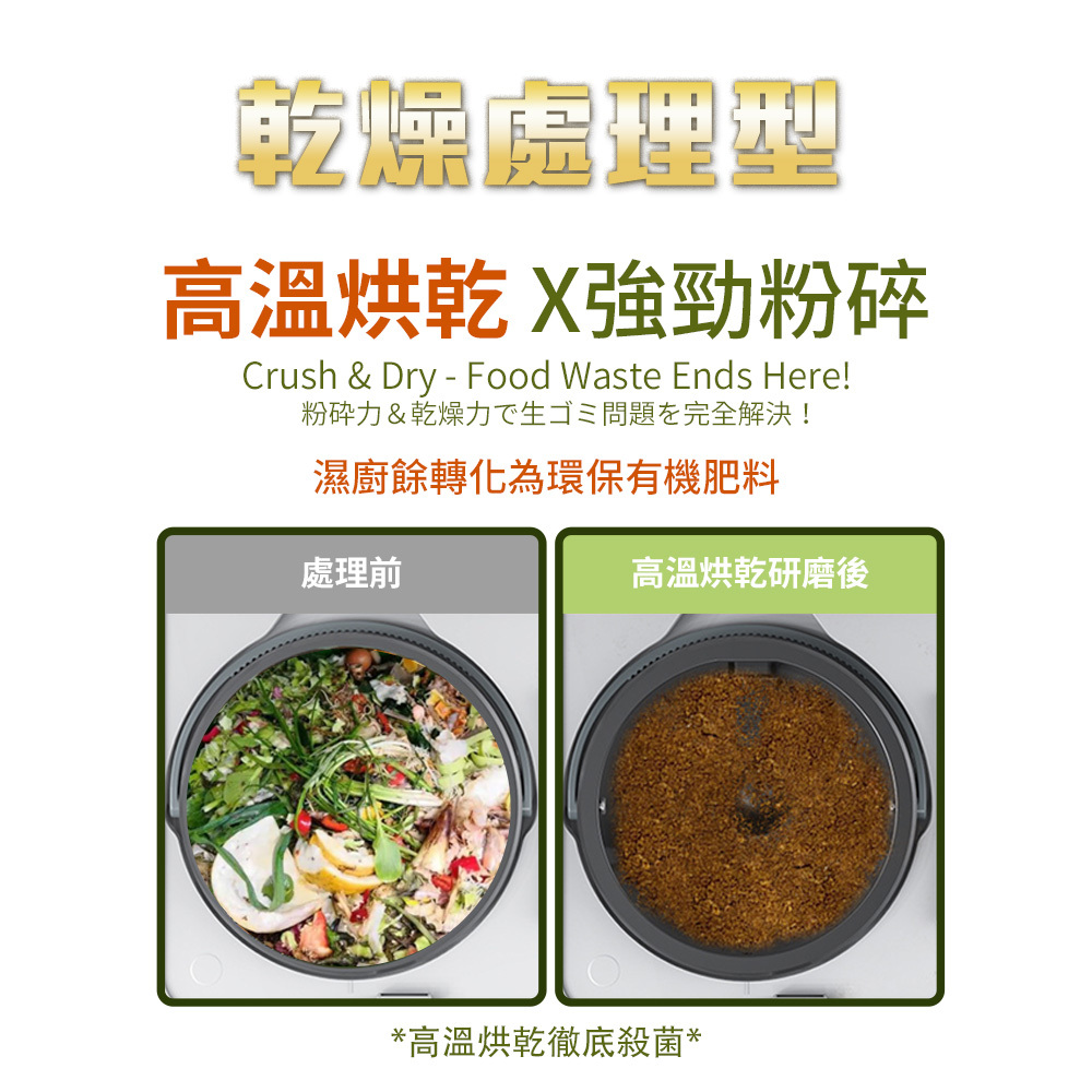●乾燥處理型廚餘機,高溫烘乾