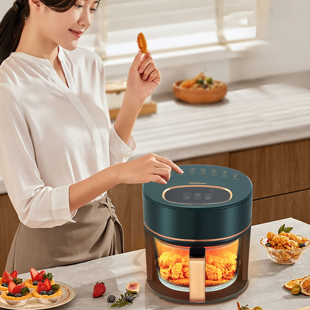 GLOLUX | Glass Basket Air Fryer Oven, 3.5L Non Toxic Non Stick Easy Cleaning Borosilicate Glass Basket, 8 Cooking Presets, Touch Digital Controls (AF3501)