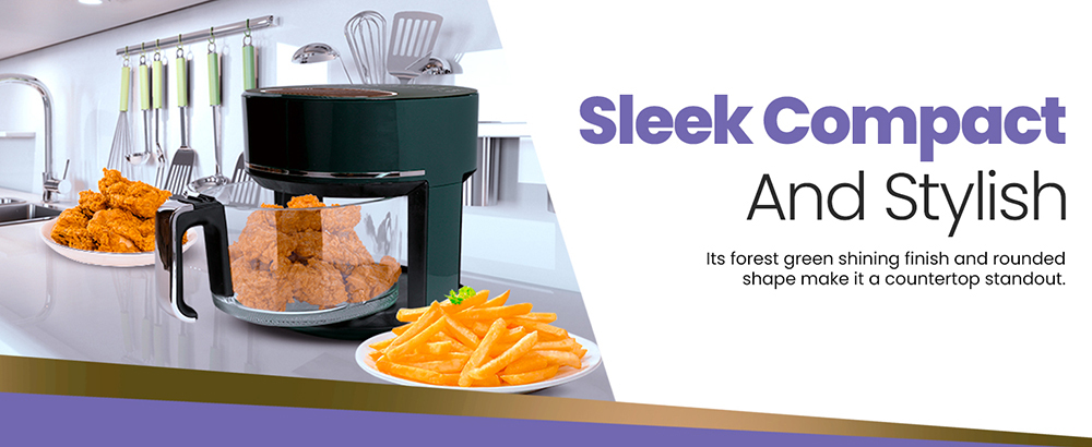 - [Space-Saving, Stylish Design] Sleek, compact, and stylish, this air fryer in forest green shines on your countertop. Its rounded shape and 2-in-1 tank and basket design maximize capacity in minimal space, ideal for small kitchens, dorms, offices, and on-the-go adventures. Experience the ultimate space-saving solution with this versatile appliance.