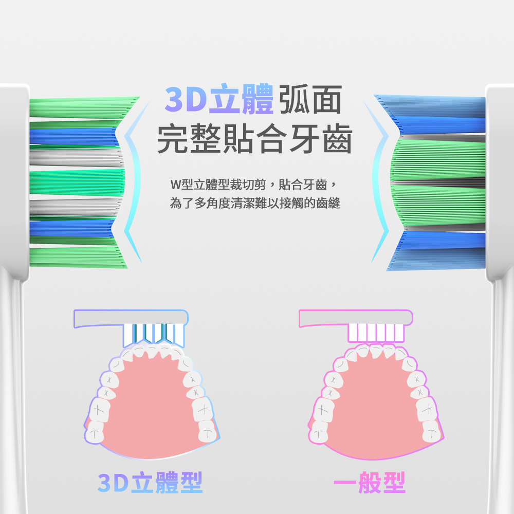 *多角度全面清潔牙齒,W型立體弧面設計貼合牙齒