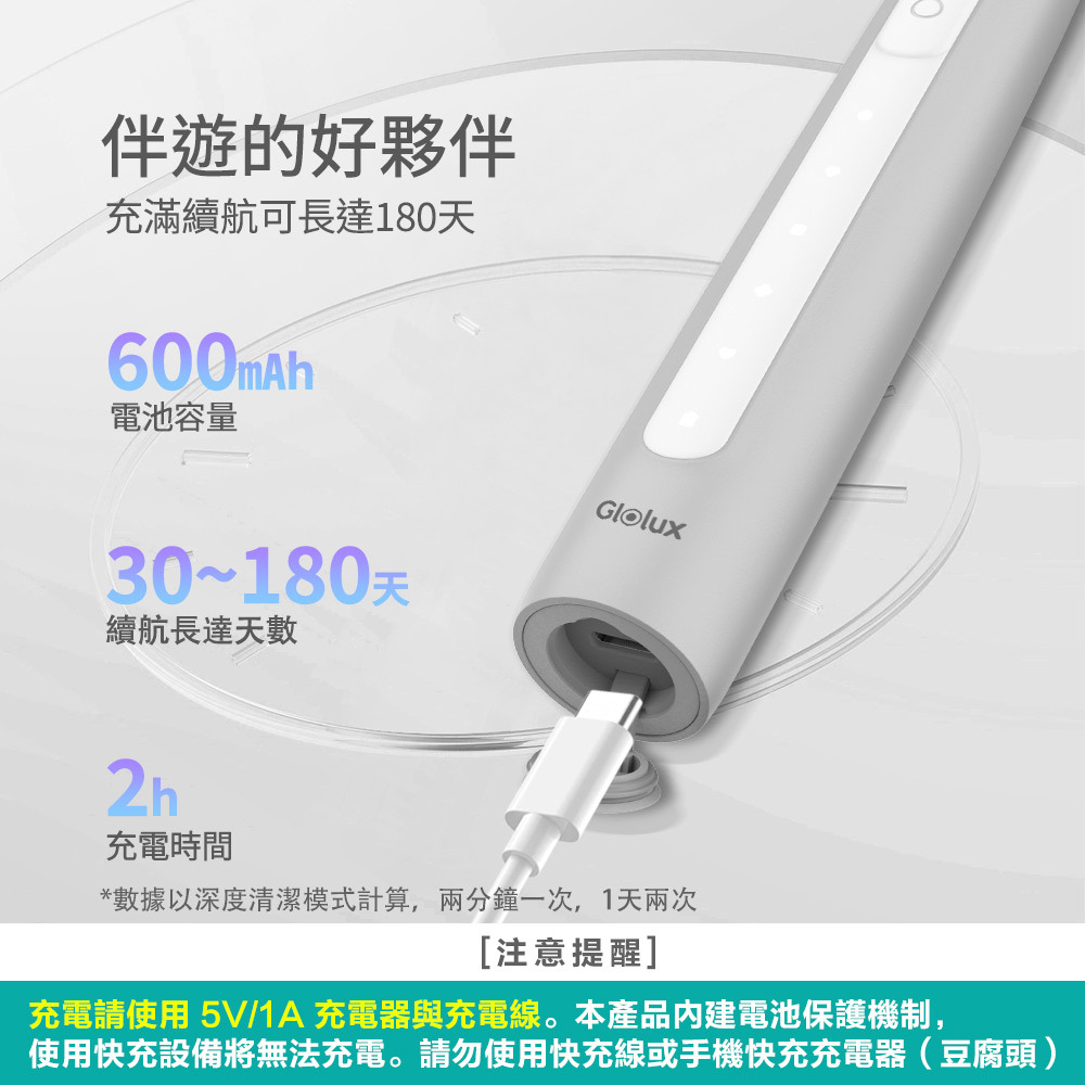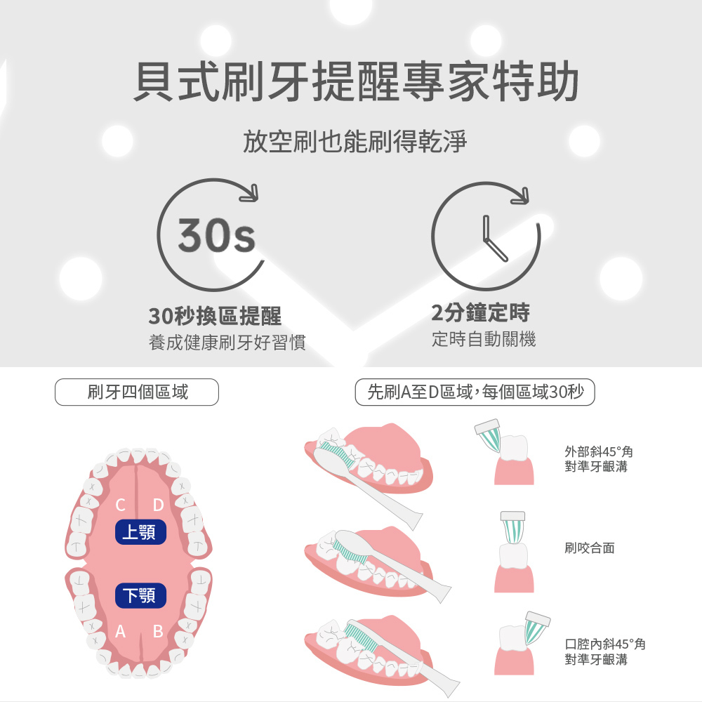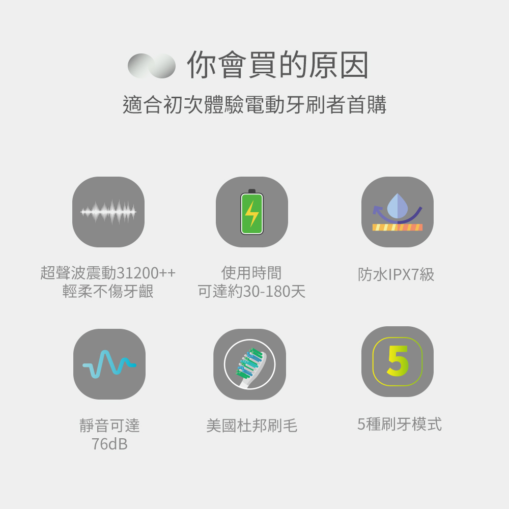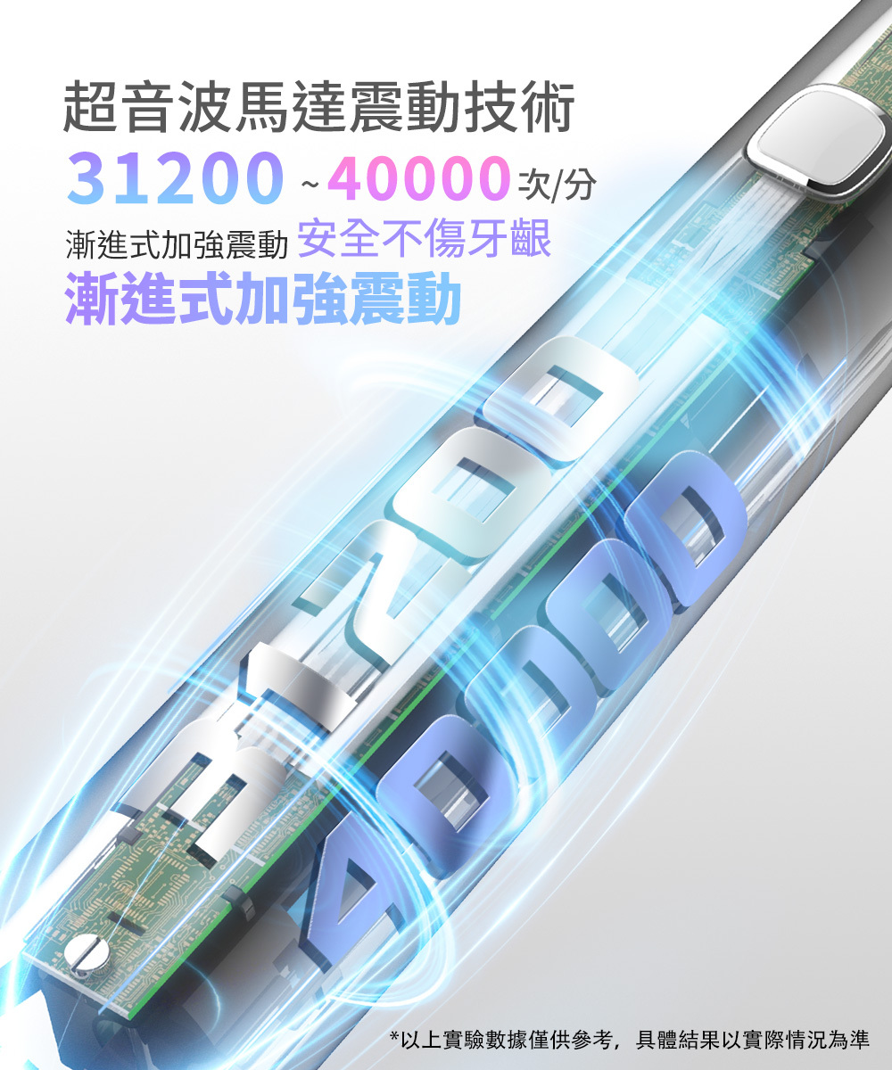 *不傷牙齦恰恰好震動,每分鐘31200~40000超音波漸進式震動