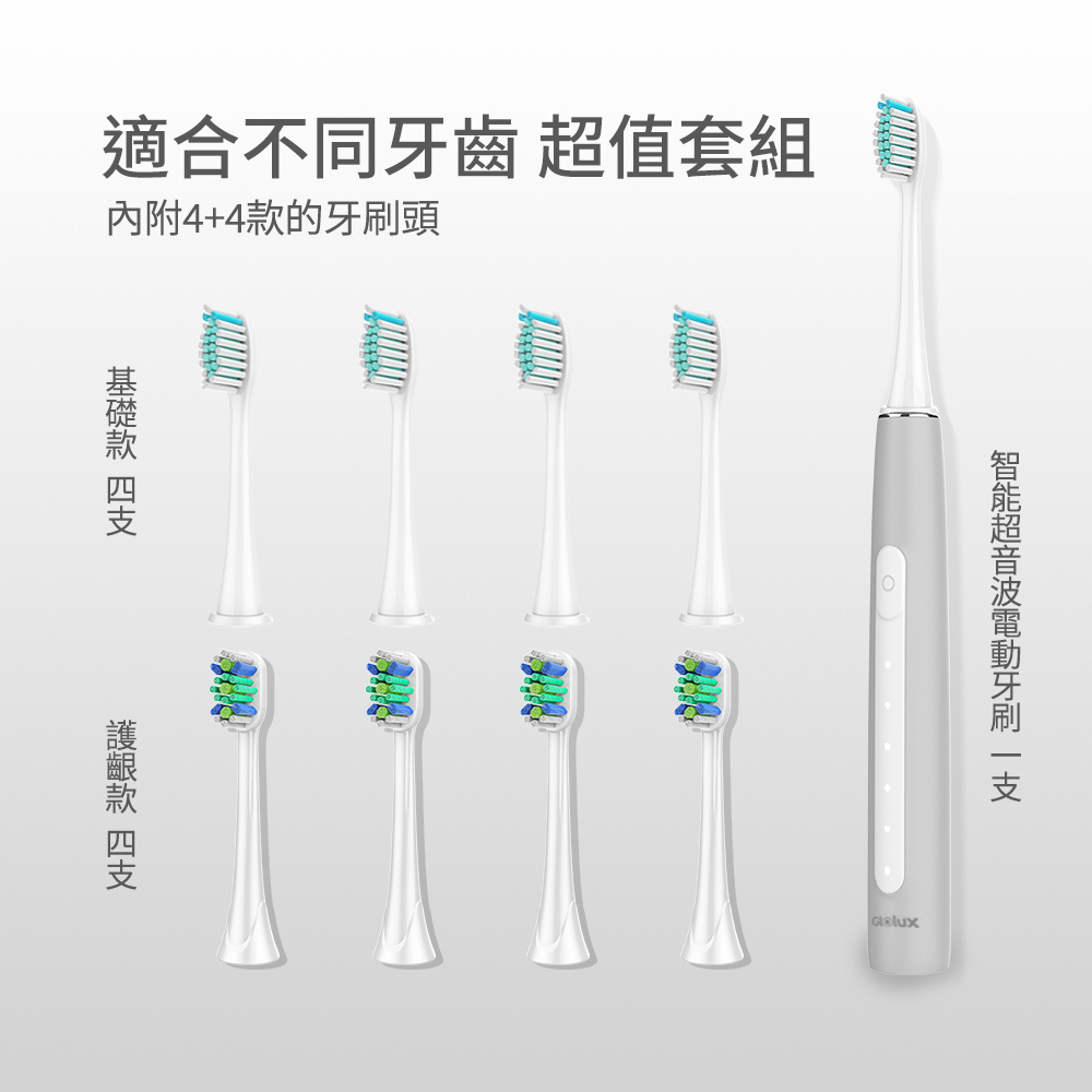 *超值組合贈送2年份牙刷頭,4+4基礎款和護齦款刷頭