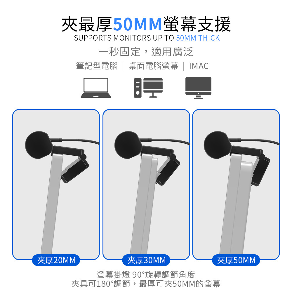 ●適用20mm-50mm厚度螢幕.適用不規則形狀的桌機螢幕